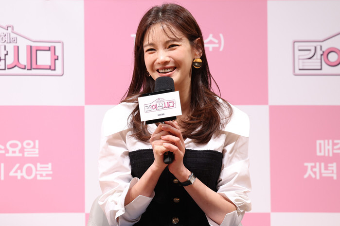South Korean entertainer Jung Ga-eun speaks during a publicity event in Seoul on Jan. 6, 2026, to promote the entertainment program "Hwang Shin-hye's Let's Live Together." The first episode of the program will be aired by the KBS TV network on Jan. 7. (Yonhap)