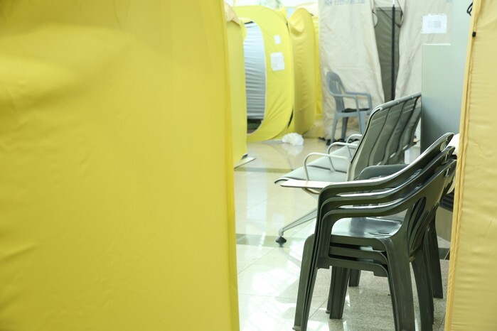 Shelters for the bereaved families of a deadly plane crash on Dec. 29, 2024, are empty on Jan. 5, 2025, as authorities concluded search operations at Muan International Airport in Muan, about 290 kilometers southwest of Seoul. (Yonhap)