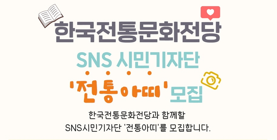 (전주=연합뉴스) 임채두 기자 = 한국전통문화전당은 전통문화 행사와 사업을 홍보할 'SNS 시민 기자단'을 오는 19일까지 모집한다고 6일 밝혔다.