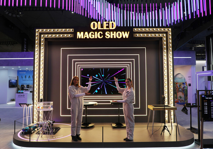 This photo, provided by Samsung Display Co., shows the South Korean display maker's booth at the Mobile World Congress (MWC) 2025, set to run until March 6 in Barcelona. (PHOTO NOT FOR SALE) (Yonhap)