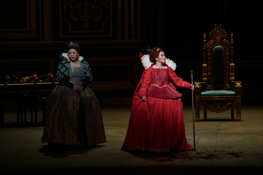 엘리자베타 역의 소프라노 손가슬은 장면마다 달라지는 여왕의 감정을 정확하게 포착했다. 명징한 고음과 강렬한 저음으로 여왕의 분노와 절망을 설득력 있게 표현한 손가슬은 극의 진행 내내 쌓아 올린 감정을 마지막 두 아리아에서 폭발시키며 모든 것을 잃은 노년의 여왕 그 자체로 변신하는 데 성공했다.