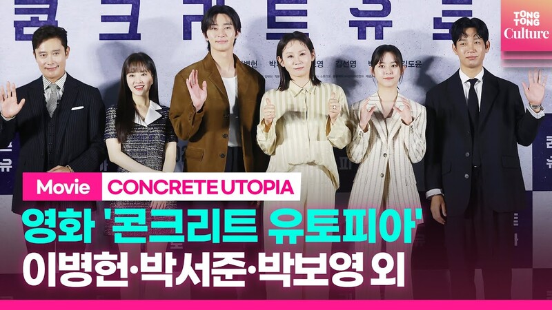 On June 21st of 2023, the press conference for the movie 'Concrete Utopia' took place in LOTTE CINEMA Konkuk Univ. The movie, 'Concrete Utopia' is a dystopian nightmare where Seoul city has been demolished as a whole due to a devastating earthquake. The whole city is destroyed besides one apartment building, and the story plays out as the remaining survivors make a living in that building.
