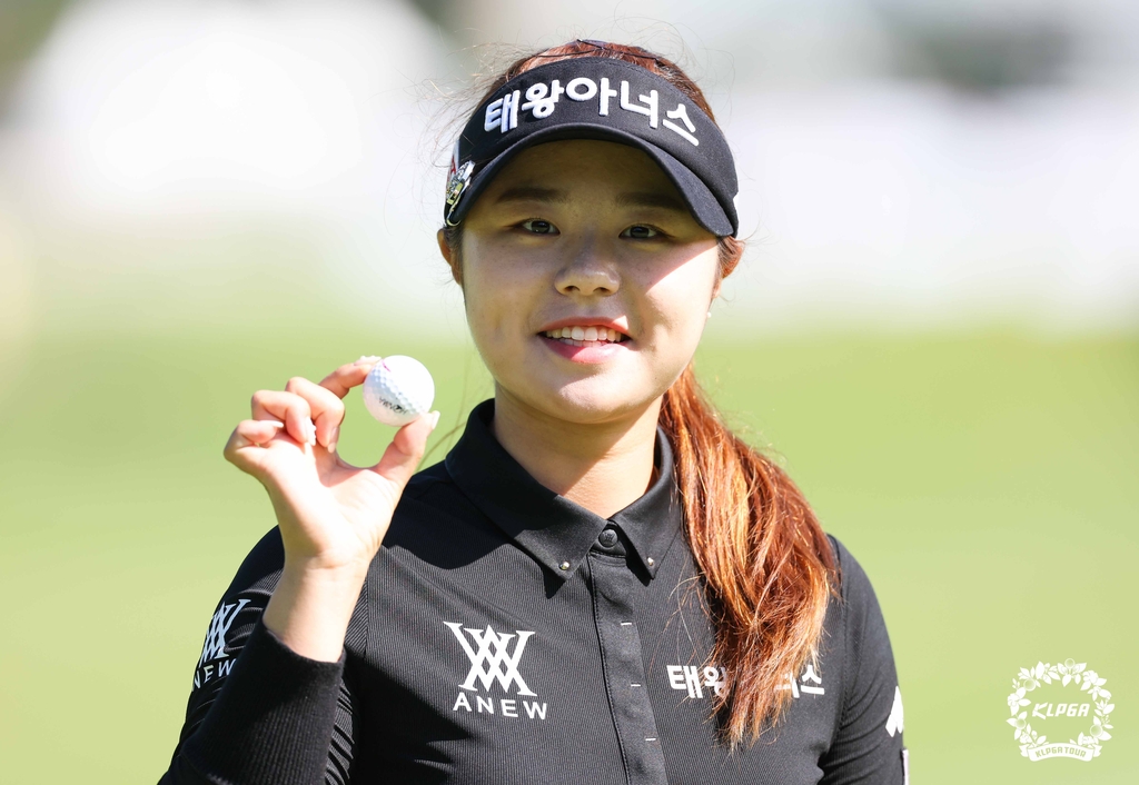 | ▲ 홀인원을 한 뒤 볼을 들어 보이는 유지나. [KLPGA 제공. 재판매 및 DB 금지] |