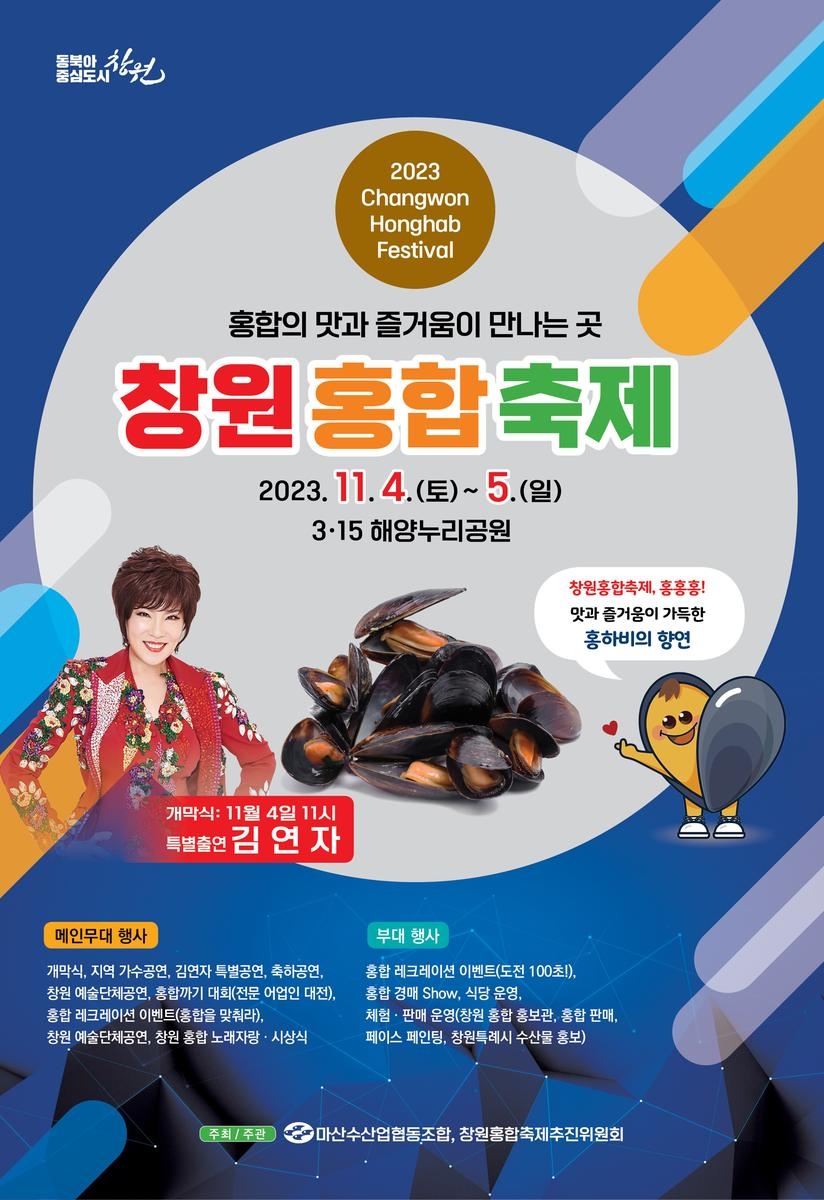 (창원=연합뉴스) 김선경 기자 = 경남 창원시는 지역 대표 수산물인 홍합을 주제로 하는 '제1회 창원 홍합 축제'를 오는 11월 4일부터 5일까지 3·15 해양누리공원에서 개최한다고 31일 밝혔다.