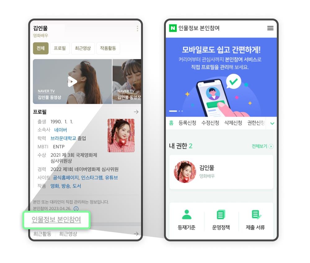 네이버 인물정보 항목 다양화…본인 참여 서비스 모바일로 확대