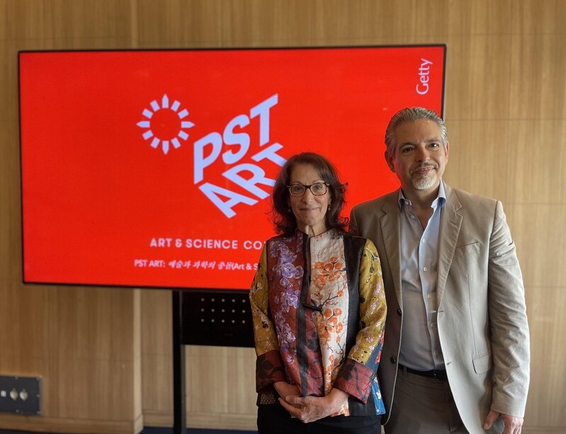 | ▲ 아트 이벤트 'PST 아트'를 홍보하기 위해 한국을 찾은 조앤 와인스틴 게티재단 디렉터(왼쪽)와 앤드루 페르척 게티미술연구소 부소장.[게티 제공. 재판매 및 DB 금지] |