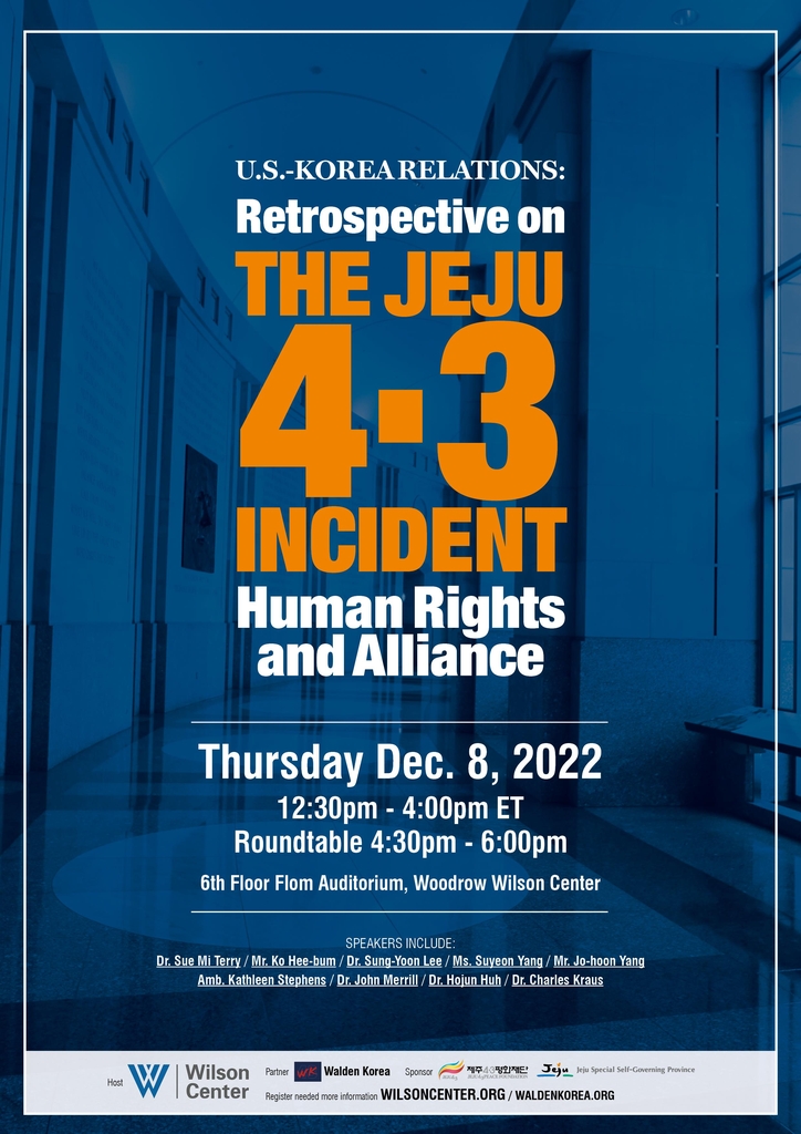 '한미관계: 제주4·3사건의 회고, 인권과 동맹'을 주제로 열리는 이번 행사는 윌든코리아, 제주특별자치도, 제주4·3평화재단이 공동주관한다.