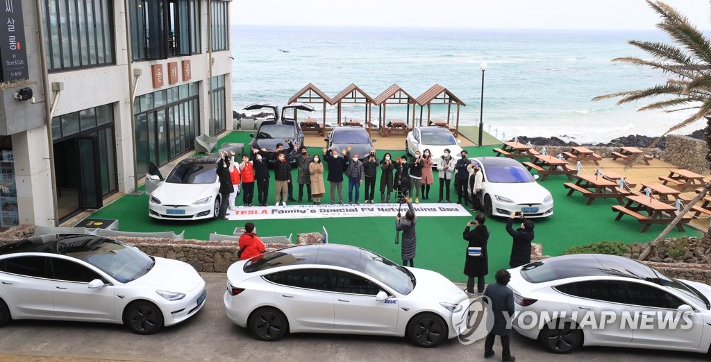 (제주=연합뉴스) 박지호 기자 = 제7회 국제전기자동차엑스포의 개막을 하루 앞둔 8일 세계 전기차 시장에서 각광받는 테슬라의 전기차들이 제주 곳곳을 누비는 퍼레이드를 펼쳤다.