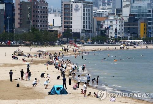 해수욕장을 찾는 피서객은 물놀이나 음식물을 먹을 때 외에는 반드시 마스크를 써야 한다.