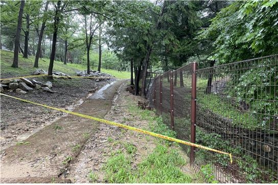 추가로 확인된 남원 만인의총은 최근 이어진 비로 배수로 일부 구간과 바닥부가 유실된 것으로 파악됐다. 현재 안전선을 설치하고 관람객 출입을 통제하고 있다.