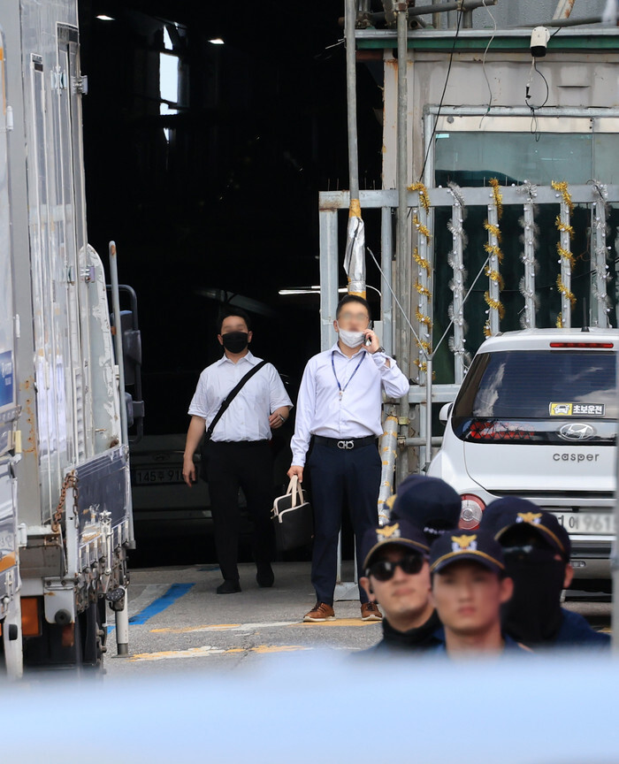 Police investigators raid Sarang Jeil Church, which is led by conservative activist pastor Jeon Kwang-hoon, in Seoul on Aug. 5, 2025, to secure evidence on allegations that Jeon and the church were involved in a January courthouse riot related to former President Yoon Suk Yeol. (Yonhap)