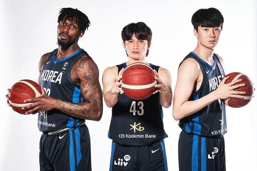 | ▲ This photo provided by FIBA on June 29, 2021, shows three members of the South Korean men's basketball team. From left: center Ra Gun-a, guard Lee Dae-sung and forward Lee Hyun-jung. (PHOTO NOT FOR SALE) (Yonhap) |