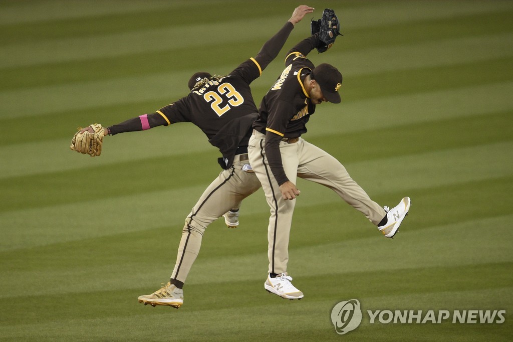 (서울=연합뉴스) 최인영 기자 = 미국프로야구 샌디에이고 파드리스가 '라이벌' 로스앤젤레스 다저스에 짜릿한 연장 역전승을 거뒀다.