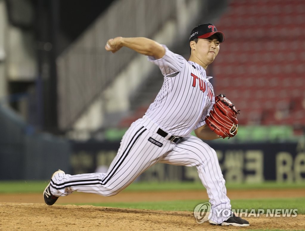 | ▲ Go Woo-suk of the LG Twins pitches against the Doosan Bears in the top of the ninth inning of a Korea Baseball Organization regular season game at Jamsil Baseball Stadium in Seoul on June 11, 2021. (Yonhap) |