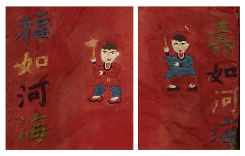| ▲ 활옷에 새겨진 글자와 동자 무늬 미국 로스앤젤레스 카운티 미술관(LACMA)이 소장한 활옷 앞면에 새겨진 글자와 동자 무늬 [국립고궁박물관 제공. 재판매 및 DB 금지] |