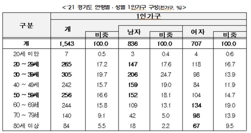 | ▲ 경기도 연령별·성별 1인가구 [경기도 제공] |