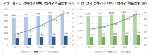 2020년 140만6천명(전체 가구의 27.6%)보다 가구 수(+13만7천명)와 비율(+1.6%포인트)이 모두 빠르게 증가하고 있다.