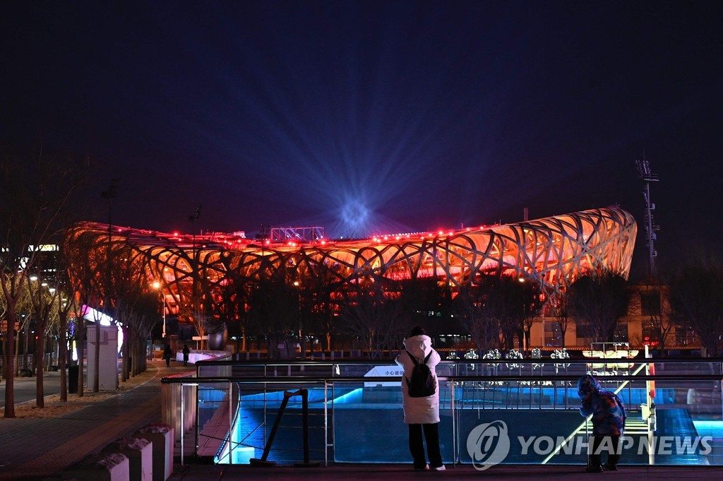 | ▲ This AFP photo shows an illuminated National Stadium in Beijing, the venue for the opening and closing ceremonies of the 2022 Winter Olympics, on Jan. 15, 2022. (Yonhap) |