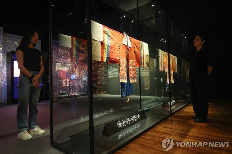 전시를 기획한 조지현 국립고궁박물관 학예연구사는 "지난해 10월에 국내로 들여와 자수 주변 밑단을 정리하고, 전체적인 얼룩과 접착제 등을 제거하는 작업을 거쳤다"고 설명했다.