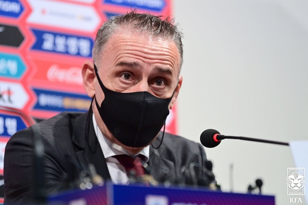 | ▲  Paulo Bento, head coach of the South Korean men's national football team, speaks at an online press conference on Aug. 23, 2021, in this photo provided by the Korea Football Association. (PHOTO NOT FOR SALE) (Yonhap) |
