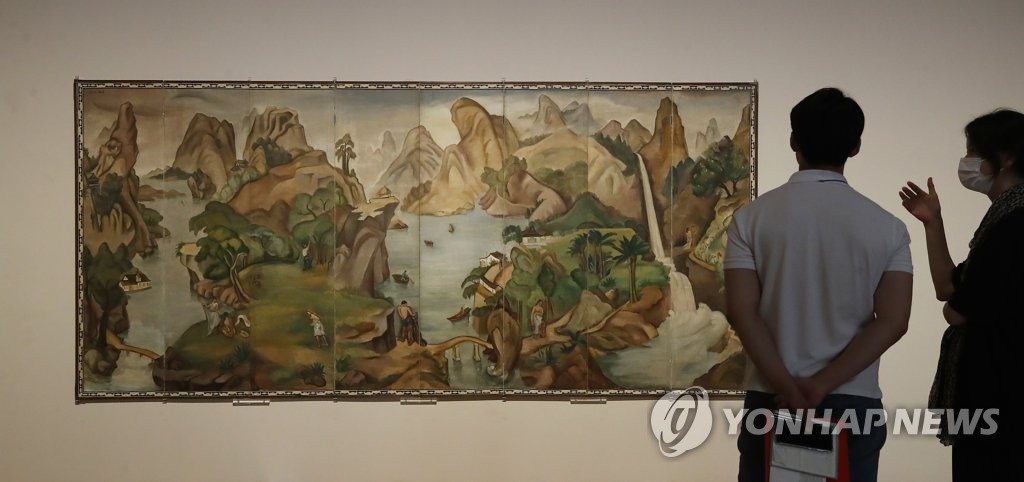 | ▲ In this file photo, reporters look at "Paradise" by late Korean painter Paek Nam-soon during a press preview of a special exhibition of late Samsung Group Chairman Lee Kun-hee's art collection at the National Museum of Modern and Contemporary Art in Seoul on July 20, 2021. (Yonhap) |