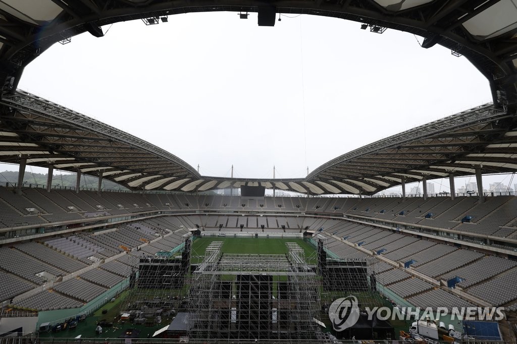 | ▲ 잼버리 콘서트 열리는 서울월드컵경기장 지난 10일 오후 서울 마포구 서울월드컵경기장에 '2023 새만금 세계 스카우트 잼버리' 마지막 행사인 'K팝 슈퍼 라이브' 공연 무대가 설치된 모습. [연합뉴스 자료사진] |