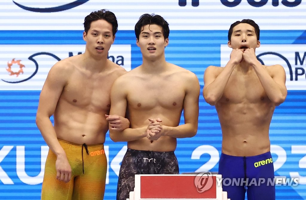 FUKUOKA, Japan, July 28 (Yonhap) -- South Korea qualified for its second straight final in the men's 4x200-meter freestyle relay at the swimming world championships Friday, as a year-old national record tumbled.