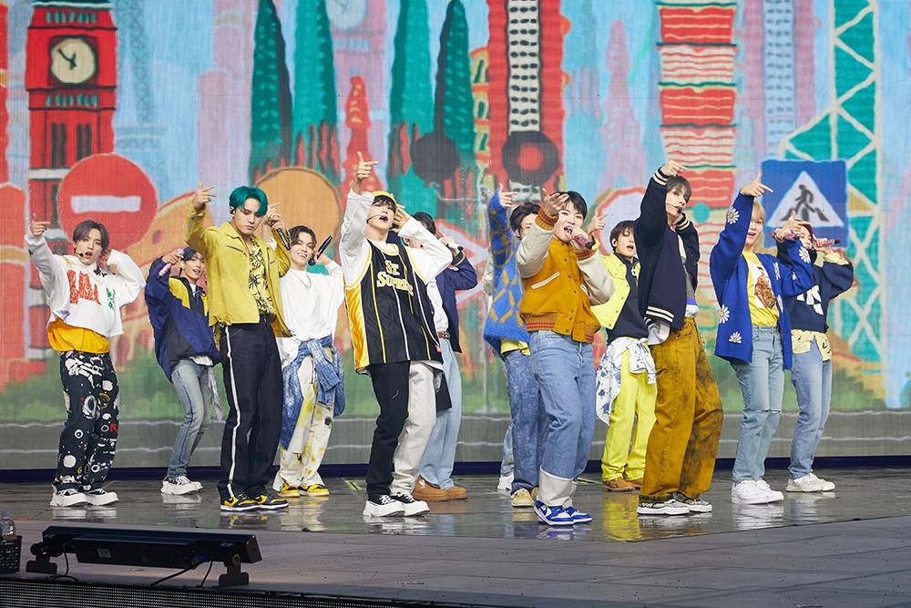 최근 CBS '더 레이트 레이트 쇼 위드 제임스 코든'과 NBC '켈리 클라크슨 쇼' 등 현지 유명 토크쇼에 출연해 다인원 그룹의 묘미를 살린 퍼포먼스를 보여줬다. 이날 콘서트 역시 전세계 122개 지역에서 관람한 것으로 집계됐다.