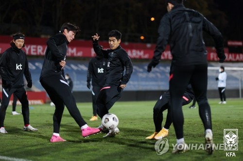 | ▲ In the Nov. 16, 2020, photo provided by the Korea Football Association, South Korean men's national football team players train at BSFZ-Arena at Maria Enzersdorf-Sudstadt in Maria Enzersdorf, Austria. (PHOTO NOT FOR SALE) (Yonhap) |