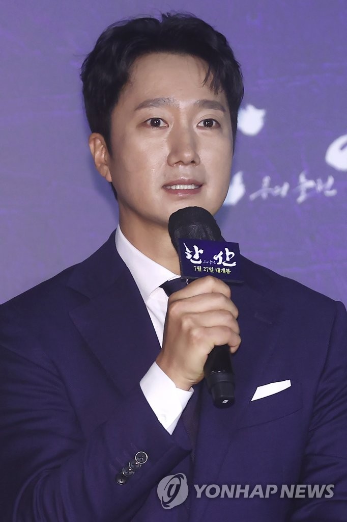 | ▲ 이순신 장군 역의 박해일 (서울=연합뉴스) 진연수 기자 = 배우 박해일이 28일 오전 서울 광진구 롯데시네마 건대입구에서 열린 영화 '한산: 용의 출현' 제작보고회에서 인사말을 하고 있다. 2022.6.28 jin90@yna.co.kr |