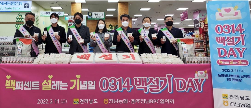 (무안=연합뉴스) 조근영 기자 = 농협전남지역본부는 전남도와 11일 농협하나로마트 무안 남악점에서 '제11회 백설기 데이'행사를 개최했다.