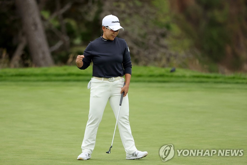 | ▲ In this Getty Images photo, Shin Ji-yai of South Korea celebrates after making a birdie on the fifth green during the first round of the U.S. Women's Open at Pebble Beach Golf Links in Pebble Beach, California, on July 6, 2023. (Yonhap) |