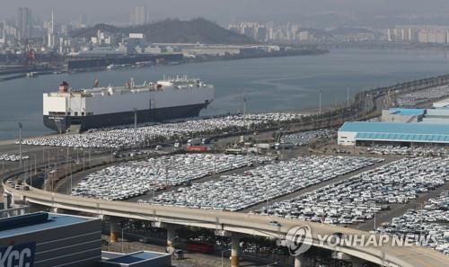 | ▲ This photo, taken Oct. 27, 2021, shows the export pier of Hyundai Motor Co. in the southeastern city of Ulsan packed with cars waiting to be shipped. (Yonhap) |