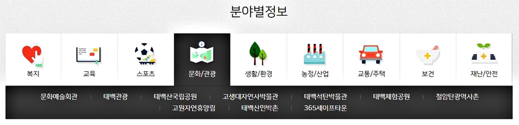 | ▲ 태백시청 홈페이지 문화·관광 정보 [캡처 배연호] |