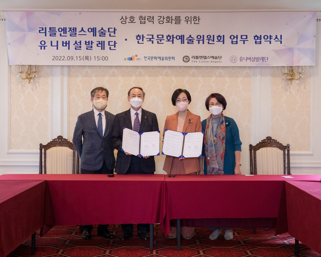 ▲ 유니버설발레단·리틀엔젤스예술단과 한국문화예술위원회는 지난 15일 공연예술자료의 수집, 보존, 이용 활성화에 관한 업무협약을 맺었다.