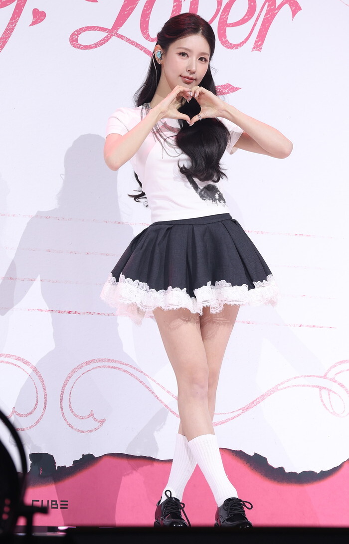 Miyeon, a member of South Korean girl group I-dle, poses for a photo during a showcase for the second solo mini album "My, Lover" in Seoul on Nov. 3, 2025. (Yonhap)