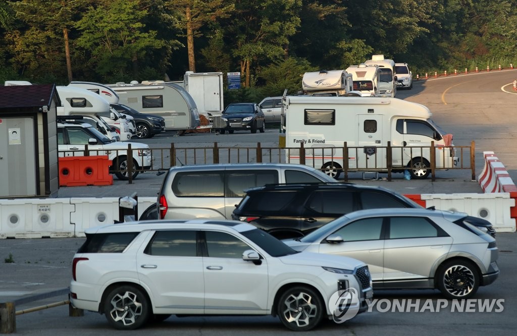| ▲ 대관령 정상의 차박 지난해 7월 대관령 정상에 몰린 캠핑카들. [연합뉴스 자료사진.재판매 및 DB 금지] |