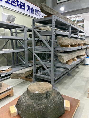 | ▲ (대전=연합뉴스) 김예나 기자 = 지난 27일 찾은 대전 국립문화재연구원 문화재보존과학센터 석조복원실에 국보 '원주 법천사지 지광국사탑' 부재들이 보관돼 있다. 2023.7.31
