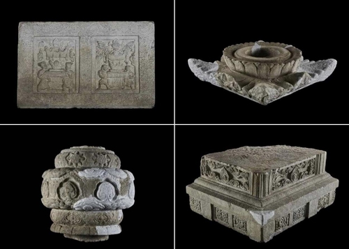 | ▲ 국보 '원주 법천사지 지광국사탑' 세부 모습 왼쪽 상단부터 시계 방향으로 상층 기단석 남면, 앙화(仰花·꽃이 위를 쳐다보는 모양의 조각), 하층 기단석, 보륜(寶輪·탑 상륜부 원형 모양의 부재). [국립문화재연구원 제공. 재판매 및 DB 금지] |