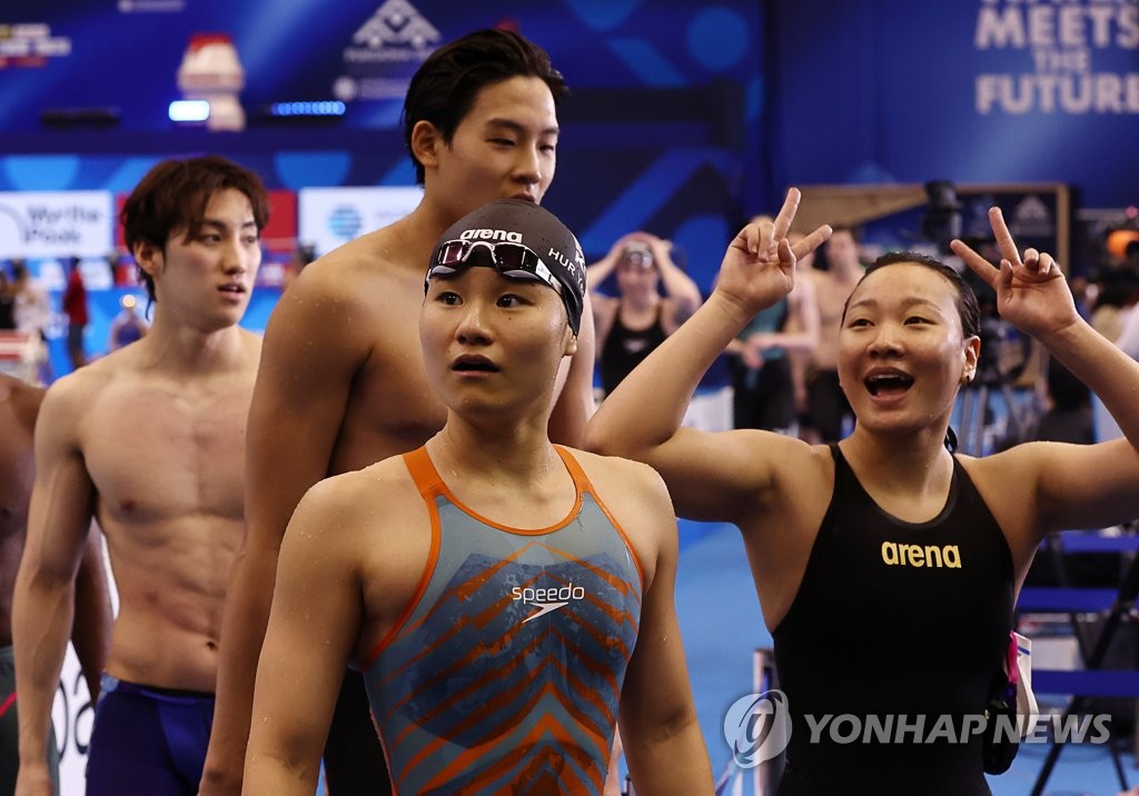 South Korea's mixed 4x100-meter medley relay team of Lee Eun-ji, Choi Dong-yeol, Kim Young-beom and Hur Yeon-kyung broke the national record by 0.83 second to finish at 3:47.09 in the heats. However, they finished 13th overall, with only the top eight teams advancing to the final scheduled for Wednesday night, back at Marine Messe Fukuoka Hall A in Fukuoka.