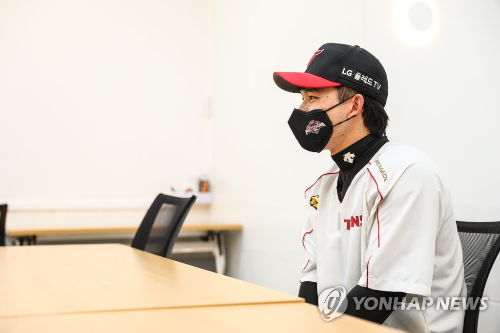 | ▲  Moon Sung-ju of the LG Twins speaks to reporters at Jamsil Baseball Stadium in Seoul on Nov. 7, 2021, ahead of Game 3 of the first round in the Korea Baseball Organization postseason. (Yonhap) |