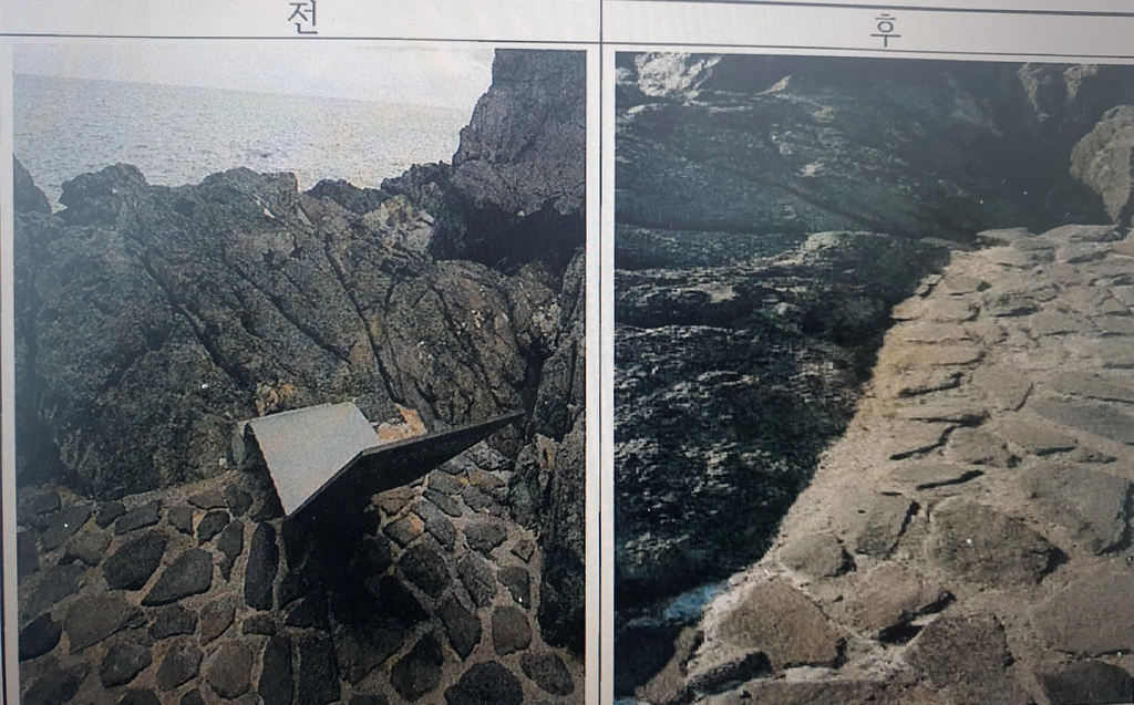 | ▲ 지워진 관광안내 표지판(왼쪽)과 새로 설치된 표지판. [부산 해운대구 제공. 재판매 및 DB 금지] |