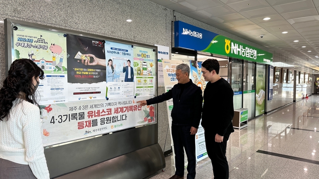(제주=연합뉴스) 백나용 기자 = 농협중앙회 제주본부가 4·3기록물 유네스코 세계기록유산 등재를 위한 응원 캠페인에 팔을 걷어붙였다.