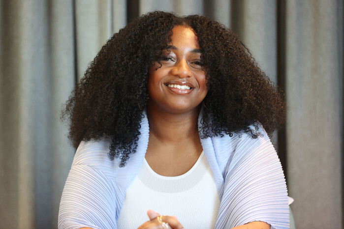 American jazz vocalist Samara Joy, who finished her first concert in South Korea, holds an interview in Seoul on Feb. 17, 2025. (Yonhap)