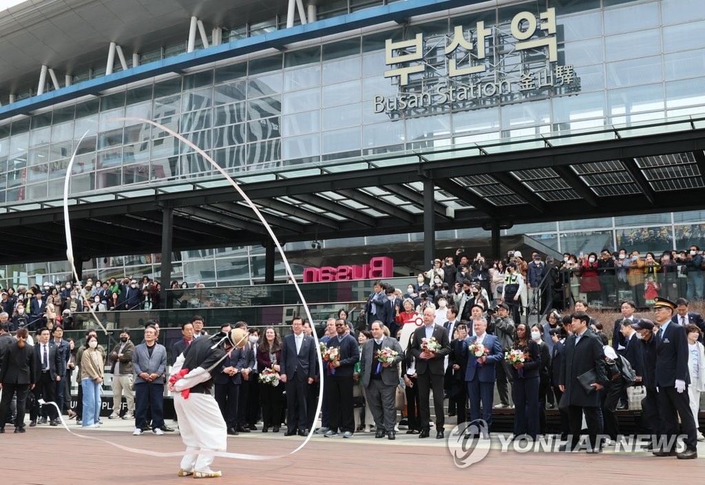 | ▲ 부산 도착한 BIE 실사단 (부산=연합뉴스) 손형주 기자 = 국제박람회기구(BIE) 실사단이 4일 오전 2030세계박람회 개최 후보지인 부산 부산역에 도착하고 있다. 2023.4.4 [공동취재] handbrother@yna.co.kr |