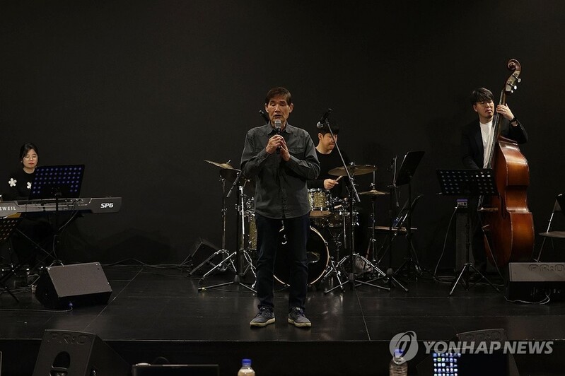 1968년 처음 노래를 시작해 어느덧 노(老) 가객으로 불리고 있는 그는 이날 '그들이 왜 울어야 하나' 외에도 '너 늙어봤냐, 나는 젊어 봤단다', '생각', '가는 세월' 등 곡으로 무대를 채우며 약 40분간 동안 흔들림 없이 노래했다.