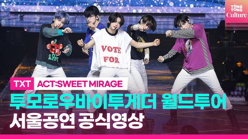 South Korean boy band TOMORROW X TOGETHER, also known as TXT, held its concert in Seoul for two days from Mar. 25 as a part of the quintet's second world tour. The five members stopped at Seoul's Olympic Gymnastics Arena to kick off their "ACT: SWEET MIRAGE World Tour."
