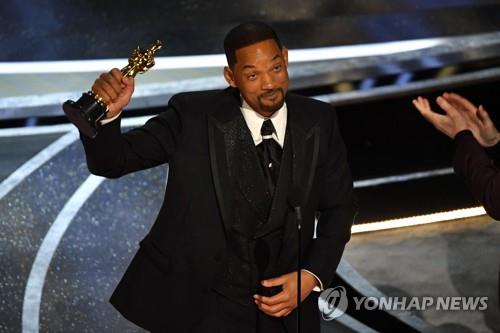 | ▲ 남우주연상을 받은 윌 스미스 (로스앤젤레스 AFP=연합뉴스) |