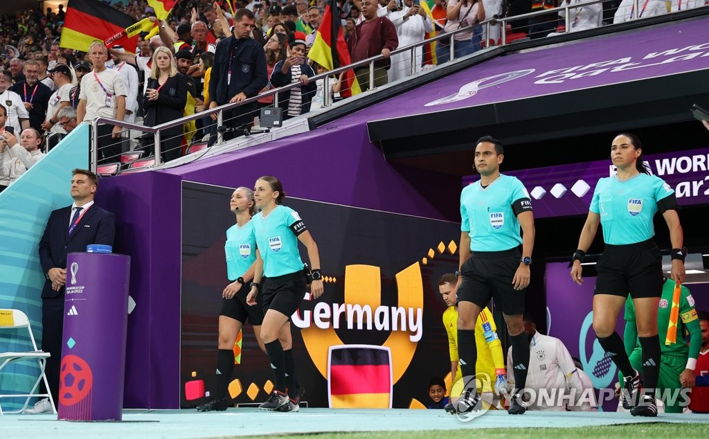 (도하=연합뉴스) 장보인 기자 = 국제축구연맹(FIFA) 월드컵 본선 경기의 주심과 부심이 모두 여성으로 꾸려지는 새로운 역사가 쓰였다.