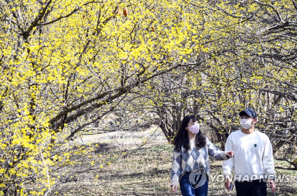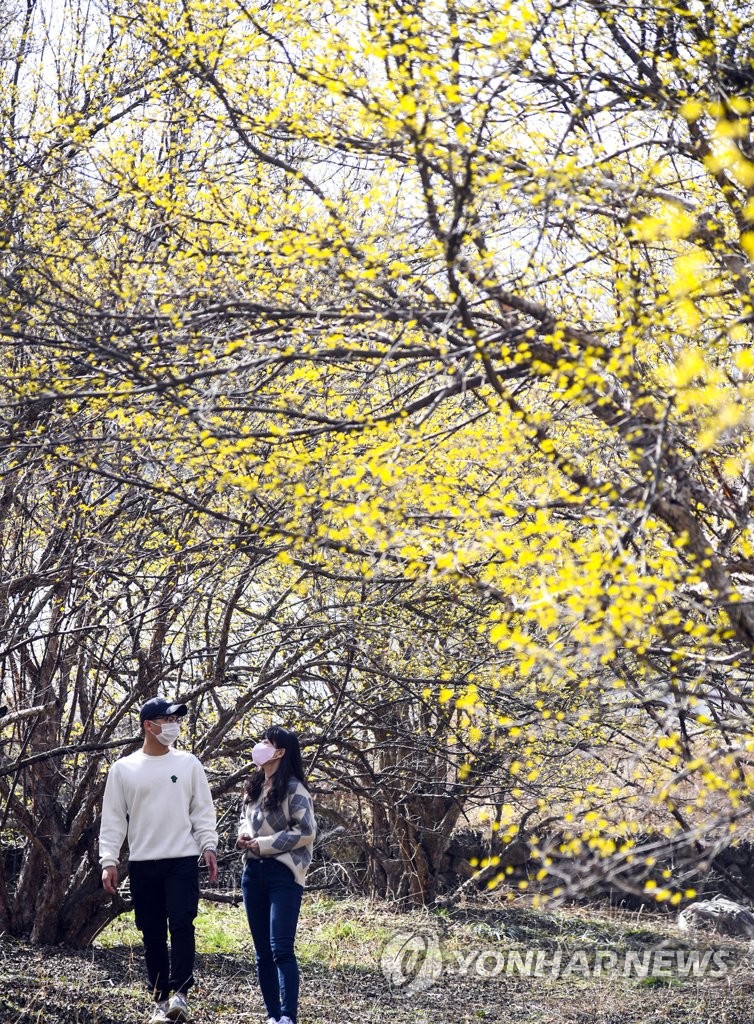 (남원=연합뉴스) '바닷속의 용궁처럼 아름답다'는 전북 남원시 주천면 용궁마을의 산수유꽃이 15일 만개해 상춘객의 눈길을 사로잡고 있다.